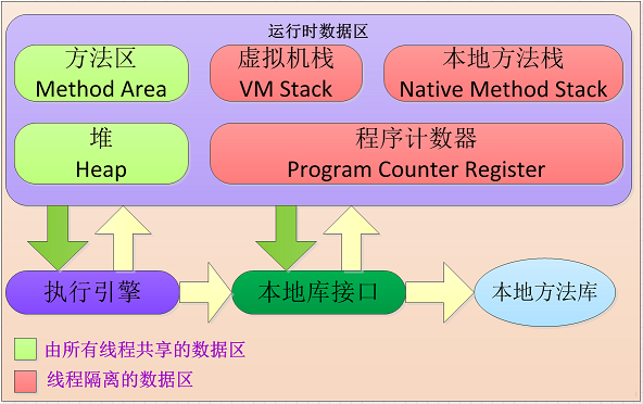 Java虚拟机在执行Java程序的过程中会把它所管理的内存划分为若干个不同的数据区域。这些区域都有各自的用途,以及创建和销毁的时间,有的区域随着虚拟机进程的启动而存在,有些区域则依赖用户线程的启动和结束而建立和销毁。