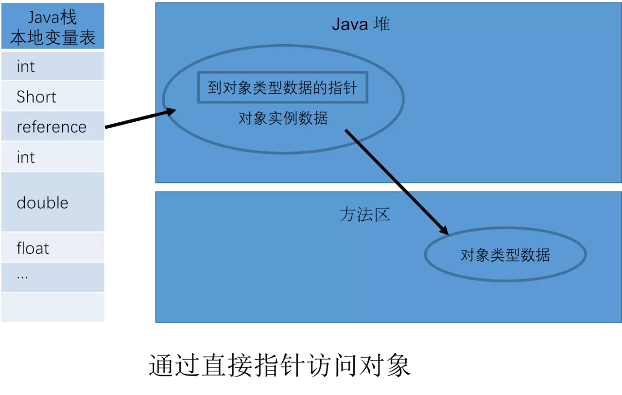 通过栈上的reference数据来操作堆上的具体对象,那么通过什么方式去定位?