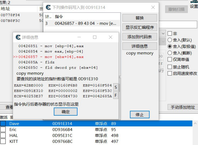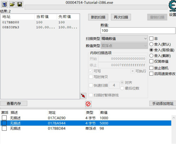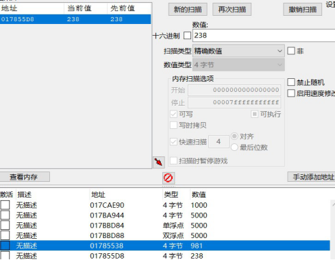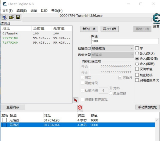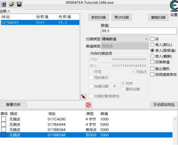 流程:类似精确值扫描,改为浮点数即可