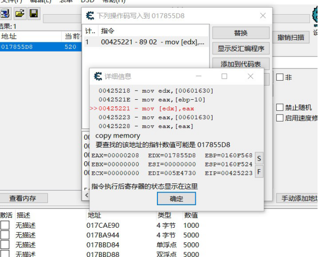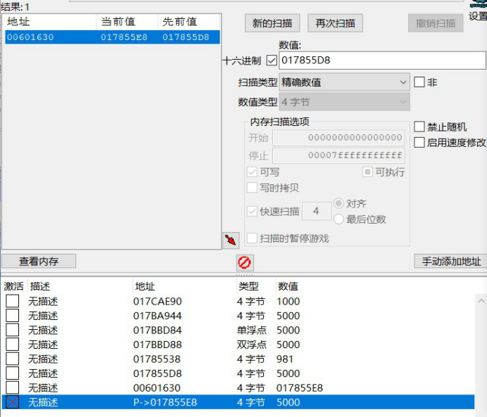 ·搜索指针地址并修改值为5000