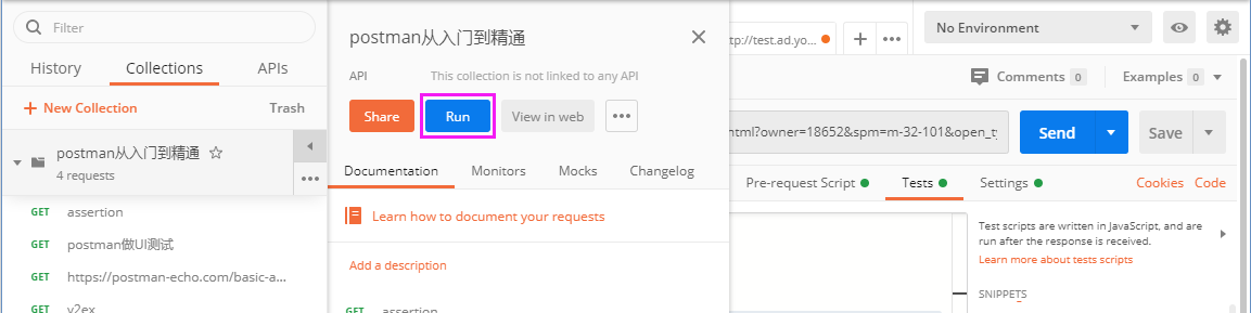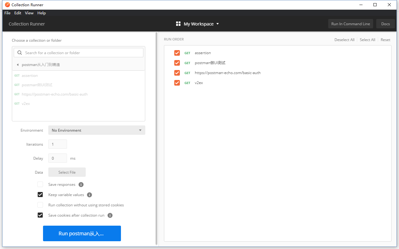 2、可以通过Collection进入到Runner中,进入之后默认已经选中一个Collection