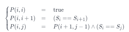 用 P(i,j) 表示字符串 s 的第 i 到 j 个字母组成的串,状态转移方程: