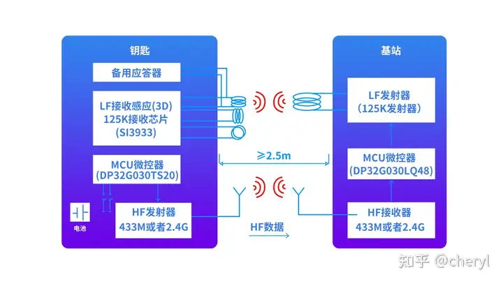 PKE技术,即passive keyless entry,在RKE基础上增加RFID工作方式,由车钥匙和车载控制组成,车钥匙进入指定范围内,车钥匙接收到车载模块的感应信号并发射应答信号,通过识别判断是否是合法授权驾驶者进行自动开门。