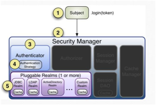 Subject认证主体调用login()方法,传给SecurityManager处理,SecurityManager里有个