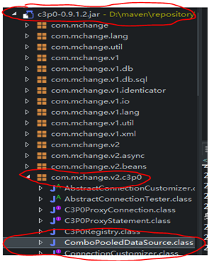 dataSource=com.mchange.v2.c3p0.ComboPooledDataSource 是下图中的jar包