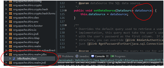 jdbcRealm.dataSource,用$相当于将dataSource对象引用过去。jdbcRealm点后的这个dataSource是下图中的setDataSource方法参数