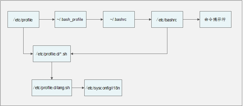 - 调用/etc/profile.d/.sh文件,这也是在“没有用户登录过程”是才调用。在“有用户登录过程”时,/etc/profile.d/.sh文件已经被/etc/profile文件调用过了。
