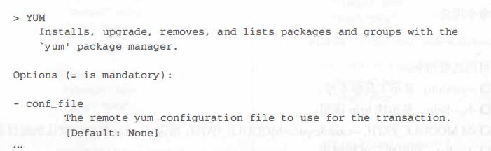 Ansible 也提供了类似千 man 功能的 help 说明工具 ansible-doc, 直接按回车键或输入-h显示功能用法。