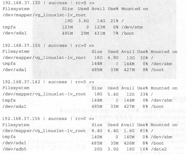 情景 1: 批量查看 apps 组所有主机的磁盘容量(使用 command 模块)。
