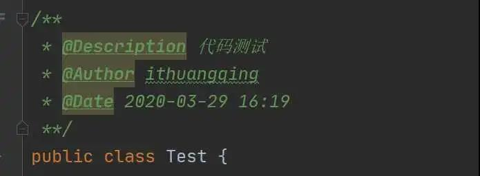 这就是一个注释,那么注释有什么用呢?简单来说就是对相关的类或者方法加以说明,比如这里的Test类,上面的注释大致告诉我们这类是谁编写的,做什么的以及何时编写的这些信息,当然,信息其实还可以有更多。