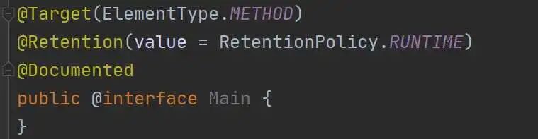 这里要引入一个元注解的概念,我们先来想一下,注解我们上面说了,一般可以用来标记类,接口或者方法等,那么这里就有一个问题了,比如我定义了这么一个Main注解: