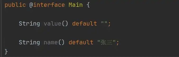 这个时候它会报错,告诉我们需要一个value值,其实也好理解,你的注解定义中定义的有一个value属性,那么你在使用的时候就需要把这个属性值给用上,那你说我可不可以不用,可以的,那定义注解属性的时候就需要给属性添加默认值,就是这样: