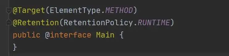 啥意思,来看下,比如我们定义的这个Main注解,我们规定它只能用来标记方法,那么可以这样做: