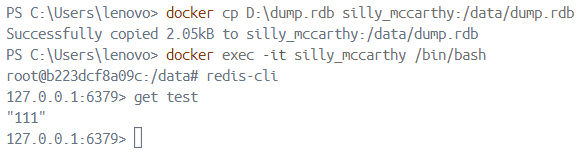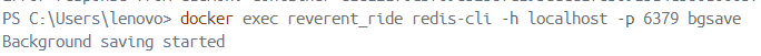 2、保存数据到文件中:(docker exec reverent_ride redis-cli -h localhost -p 6379 bgsave)