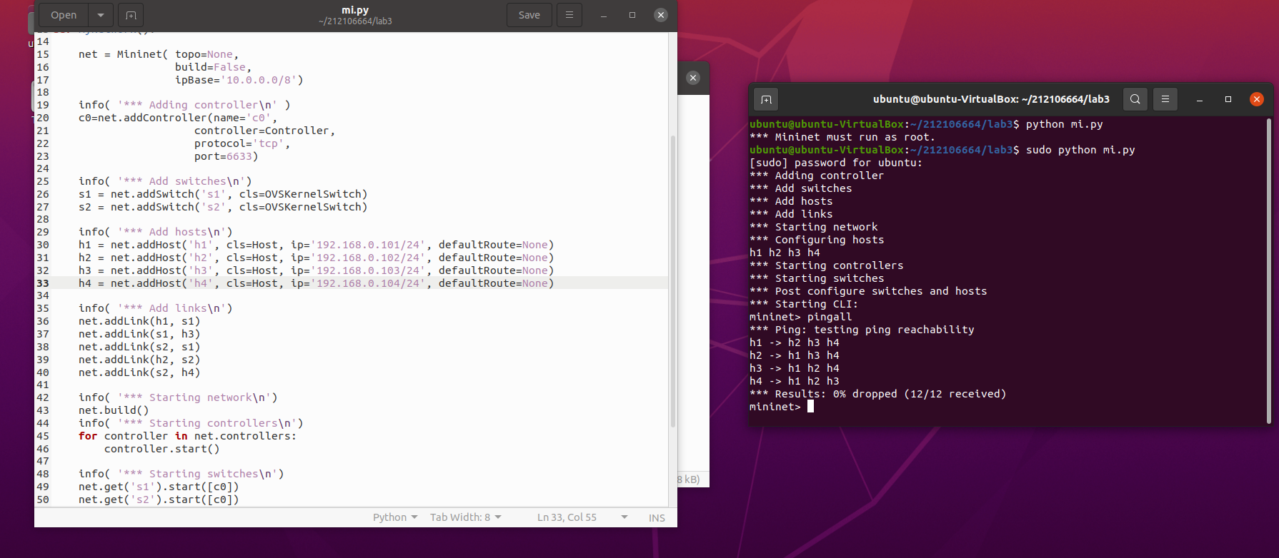 - 搭建下图所示拓扑,完成相关 IP 配置,并实现主机与主机之间的 IP 通信。用抓包软件获取控制器与交换机之间的通信数据。