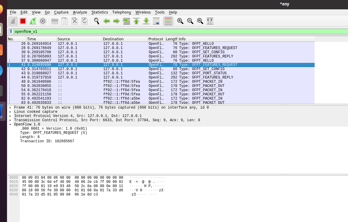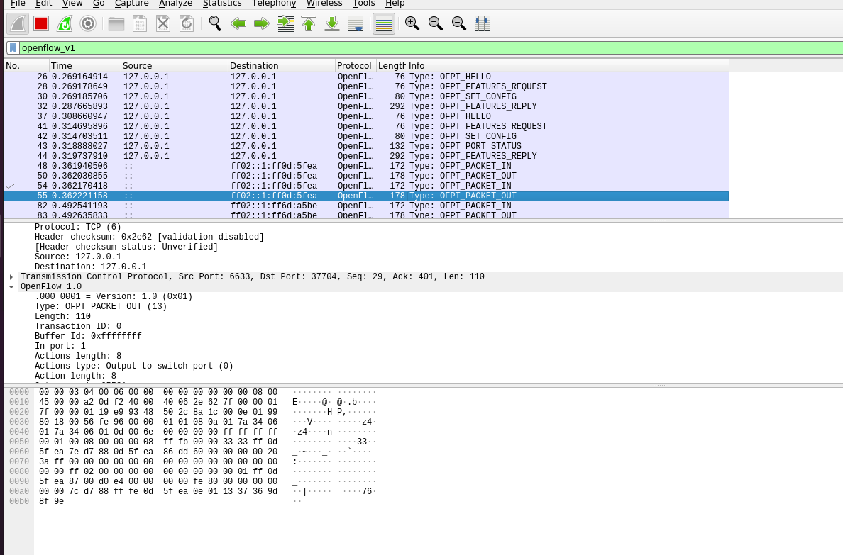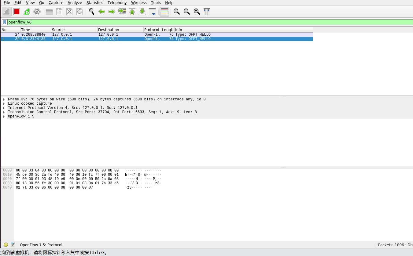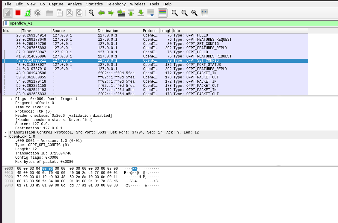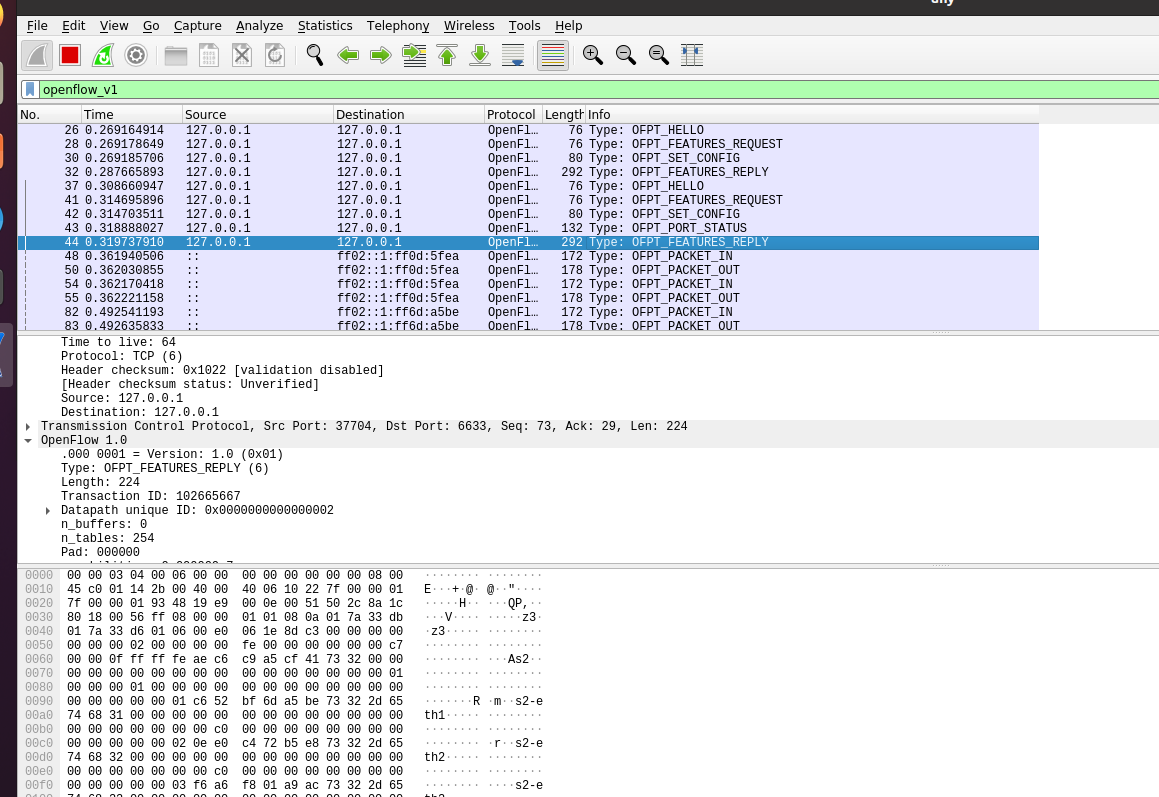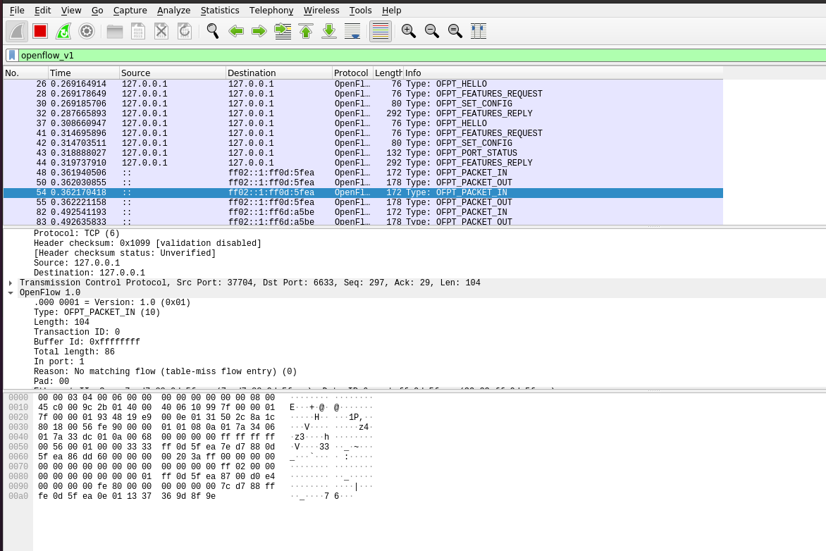 - 能够运用 wireshark 对 OpenFlow 协议数据交互过程进行抓包;