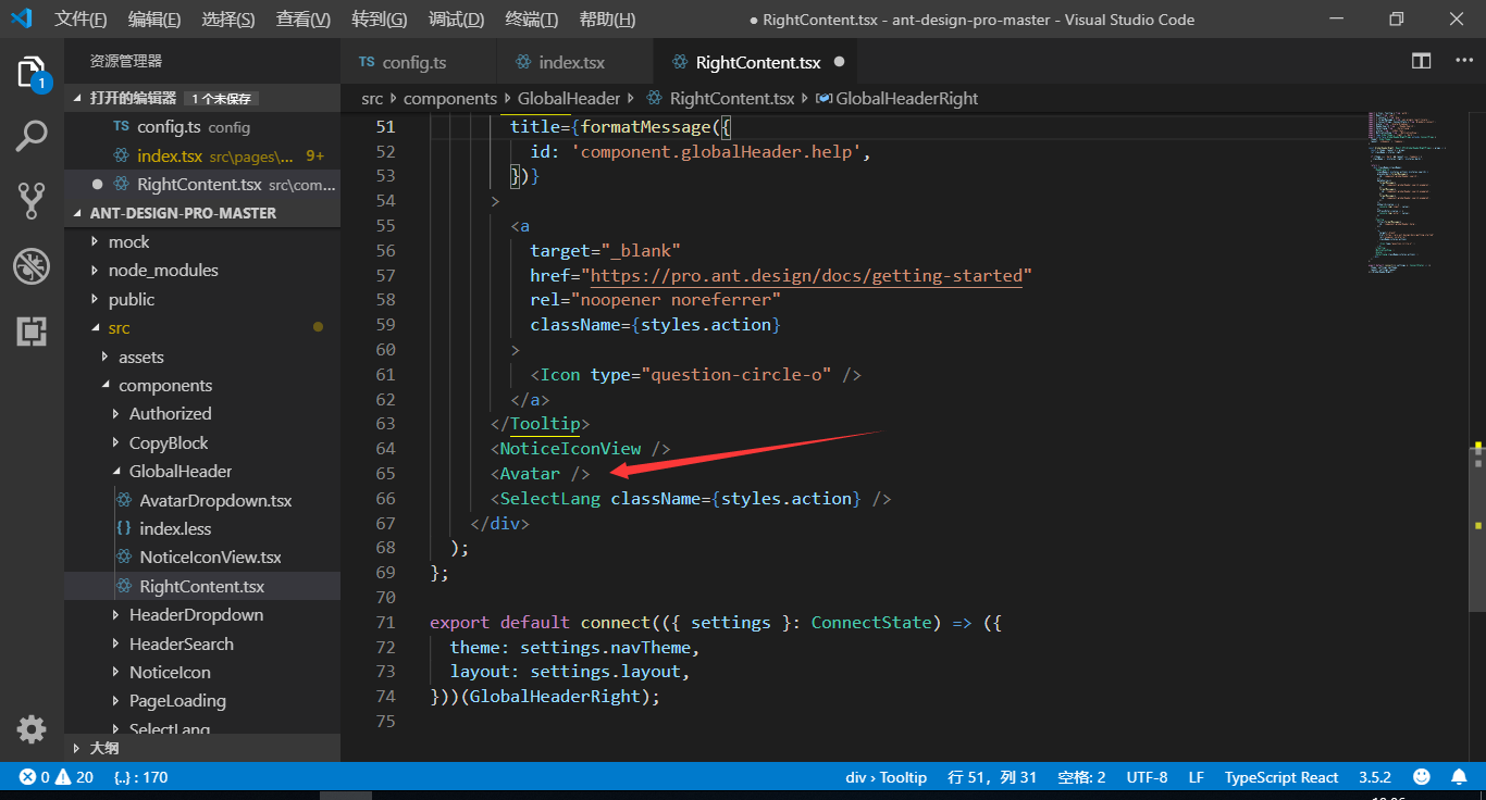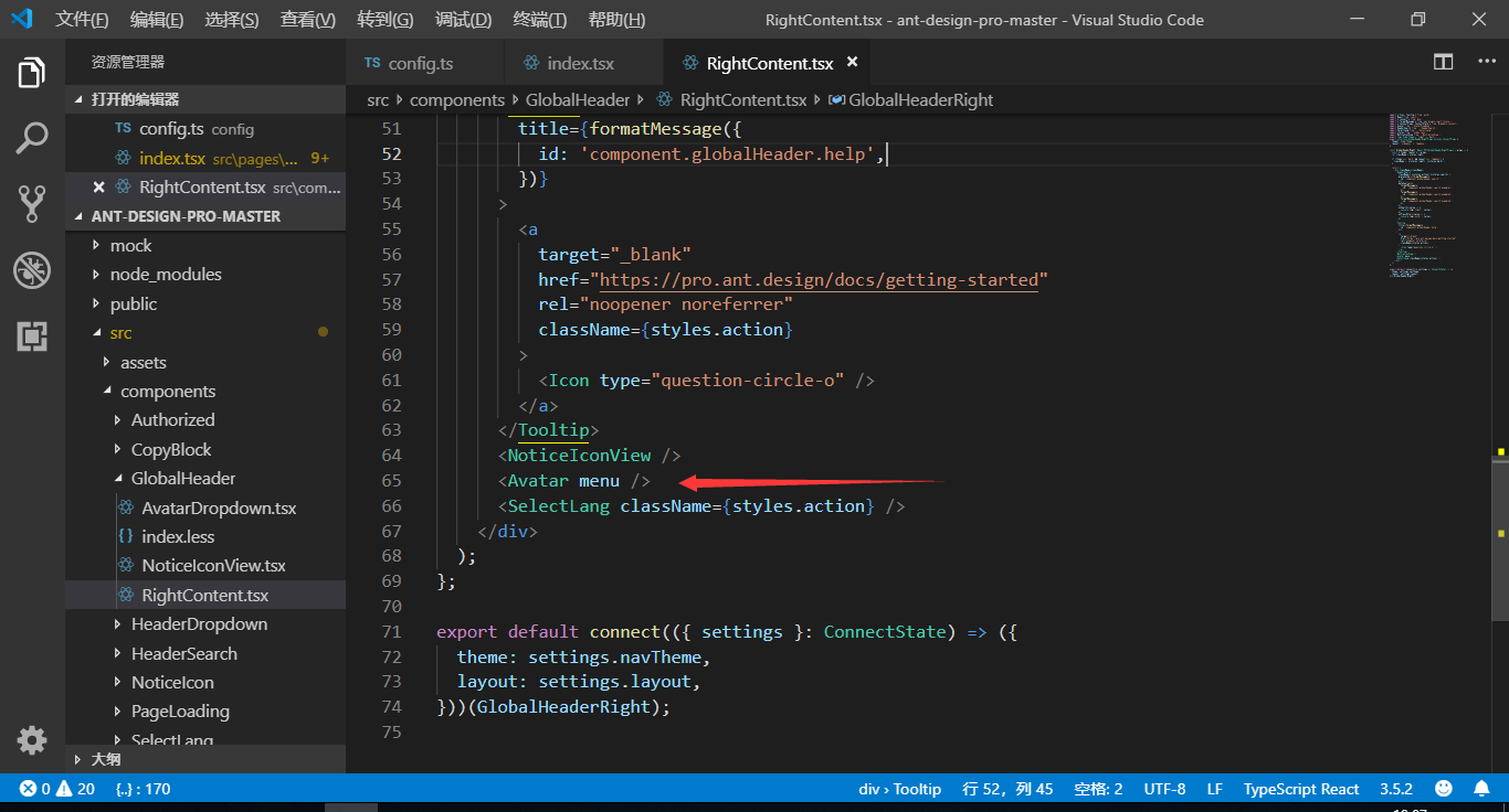 AntDesignPro v4.0右上角用户名不弹出下拉菜单问题解决