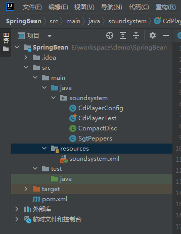 我们还需要一个 CompactDisc 的实现,实际上,我们可以有 CompactDisc 接口的多个实现。在本例中,我们首先会创建其中的一个实现,带有 @Component 注解的 CompactDisc 实现类 SgtPeppers: