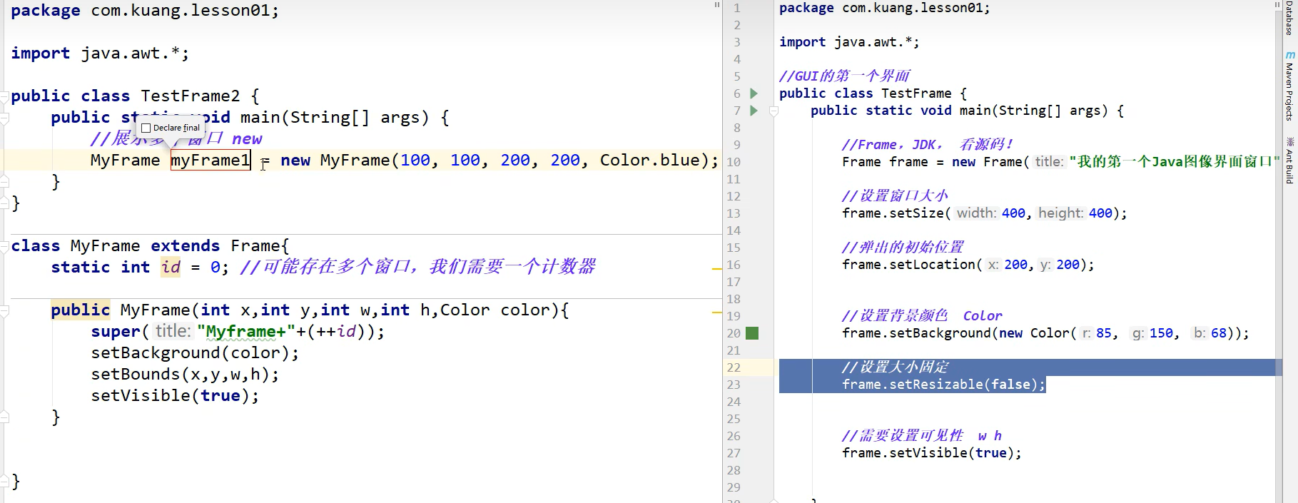 new MyFrame(rd.nextInt(100),rd.nextInt(100),i*rd.nextInt(1000),i*rd.nextInt(1000), Color.red);