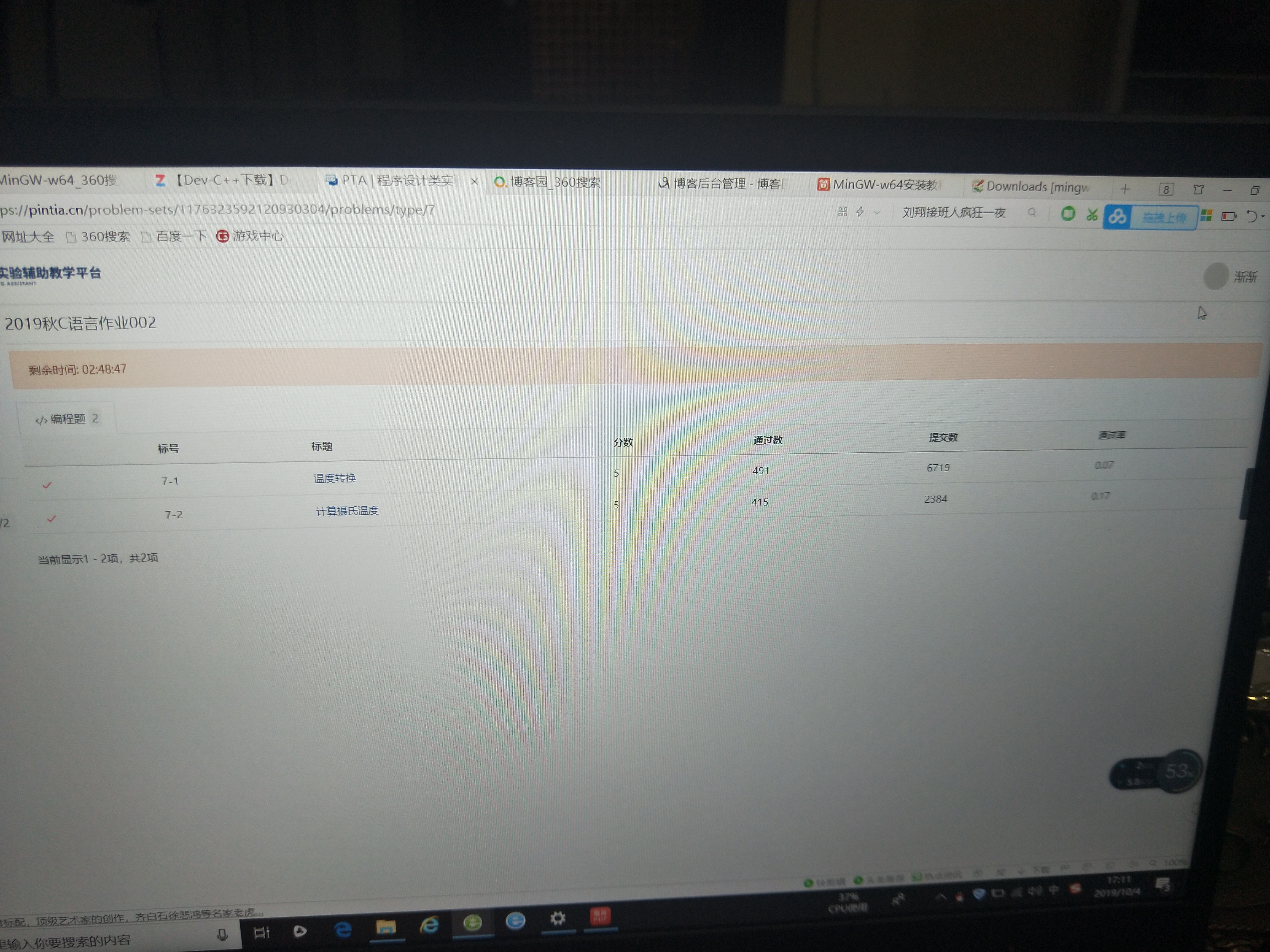 2.请仔细阅读蓝墨云班课中的资源《PTA系统常见问题解答》,结合你的编程实际,描述你出现过什么问题。