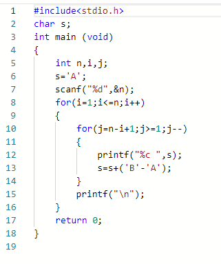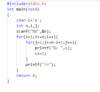 1.2本题要求编写程序,输出n行由大写字母A开始构成的三角形字符阵列。