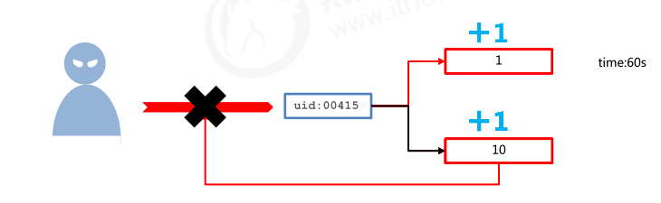 # 当调用10次后,incr操作的最大值,抛出异常,禁止访问;60s过期后,重新操作