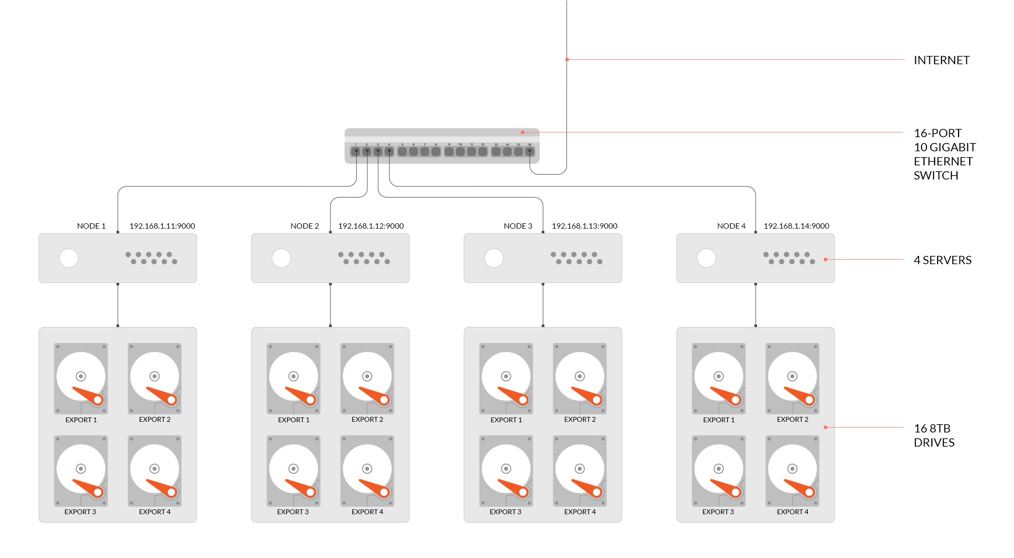 minio server http://192.168.1.11/export1 http://192.168.1.12/export2 \