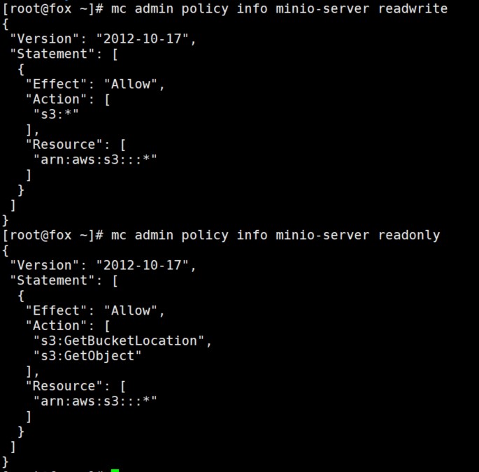 - policy命令,用于添加、删除、列出策略,获取有关策略的信息并为Minio服务器上的用户设置策略。