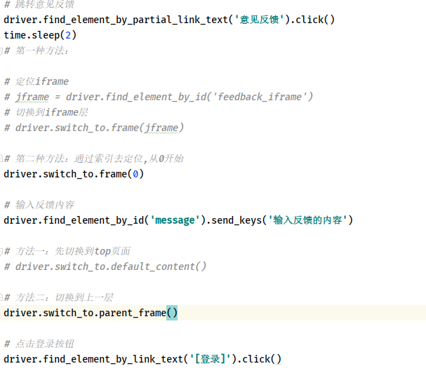 - 有时候iframe元素没有id、name这些属性,可以通过索引定位(不推荐)