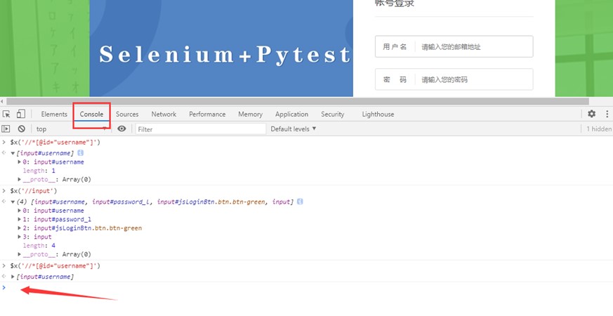【selenium】22、Xpath定位之调试$x('xpath语法')