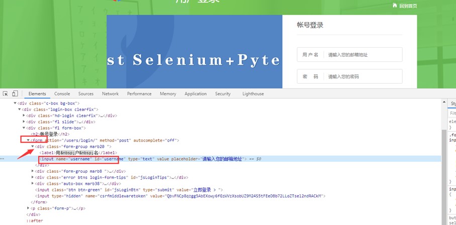 2、案例:通过定位登录输入框,找到form标签//*[@id="username"]/../..