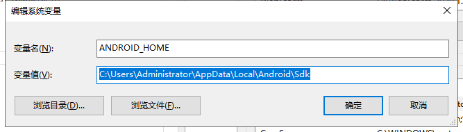 - 配置SDK路径:变量名:ANDROID_HOME;变量值为上一步看到的路径