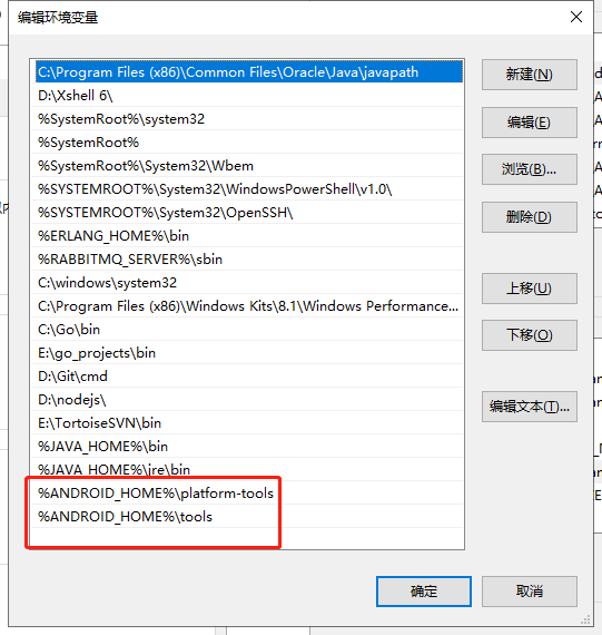 - 配置Path【添加:%ANDROID_HOME%\platform-tools;%ANDROID_HOME%\tools】