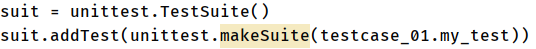 suite.addTest(unittest.makeSuite(ClassName))- 举例: