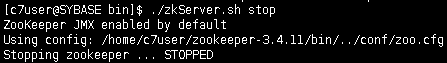 %ZK_HOME%/bin目录下执行./zkServer.sh stop命令,得到如下图所示。