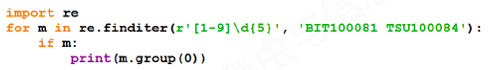 a=re.findall('[1-9]\d{5}','chengde367000bengjing10051shanghai200088')
