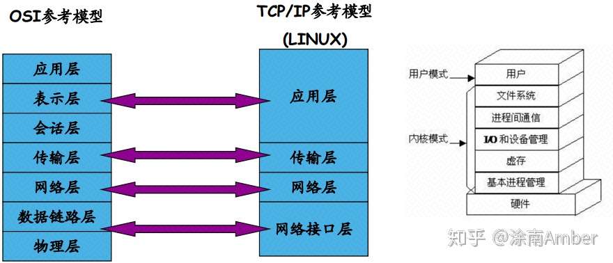 这五句话中,我们可以感受到抽象的层次,抽象层次越高,细节越少,普适性越强。再比如下图中关于网络模型的抽象,关于操作系统内核的抽象,我们可以明显的看到不同层次的抽象,就是过滤不同的信息,最终留下来的信息才是当前抽象层次所需要的信息。从系统设计实现上来说,抽象层次越高,越接近设计,越远离实现,同时抽象的模型越不受细节的羁绊,稳定性越高,普适性越强,可重用性就越高。