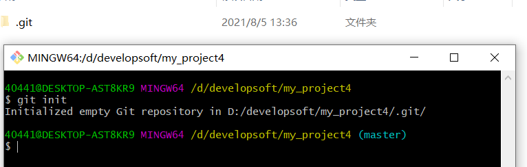 1,在新建的工作空间文件夹右键点击git bush here进入命令窗口,初始化本地仓库