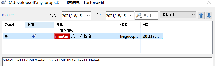 4,查看提交日志,右键本地仓库空白处,Tortoise(T) 选择显示日志