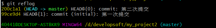 2,从第二个版本切换到第一个版本 git reset --hard 版本唯一索引