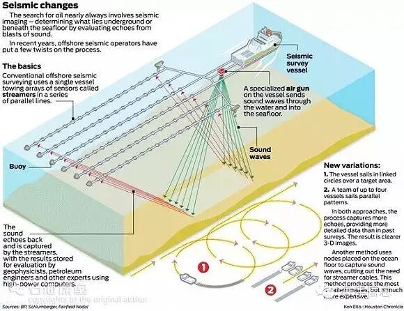 海底电缆就是接收地震波的数据接收器(检波器)放置于海底。