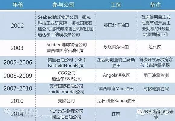 BGP的海底电缆设备OBN采集技术在国外的应用比较广泛,从各石油公司的项目成果来看,该技术具有很好的市场应用前景。2002年,Seabed地球物理公司、挪威科技工业研究院(SINTEF)、挪威国家石油公司(STAToil)、挪威海德鲁公司(Norsk Hydro)和法国道达尔菲纳-埃尔夫公司(Total Fina-Elf)联手在英国北海油田首次使用自主式地震节点开展工业规模的4分量地震勘探工作。之后,墨西哥国家石油公司、英国石油公司、道达尔E&P公司、壳牌等都在其各自工区开展了OBN勘探项目。值得一提的是,2014年,东方地球物理公司(BGP)联合阿拉伯石油公司在红海开展了部分OBN的实际地震勘探工作,开创了我国在OBN勘探方面的先河。