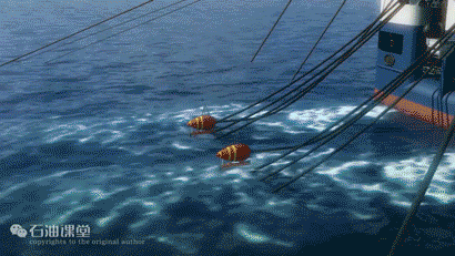 海上拖缆就是接收地震波的数据接收器(检波器)漂浮在海面下方。