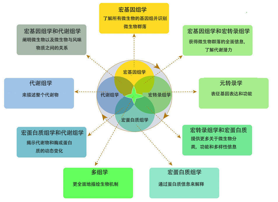如果上述的组学技术被单独应用,只有发酵过程的一小部分将被充分解释。因此,与单组学的应用相比,多组学分析可以从基因、mRNA水平、蛋白表达与调控、细胞代谢等多水平结果提供更全面的信息。这将为生物机制提供更多证据,并揭示候选关键因素。