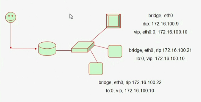 ipvsadm -a -t 172.16.100.10:80 -r 172.16.100.21 -g