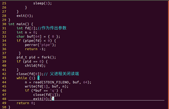 pipe 函数打开的文件描述符是通过参数(数组)传递出来的,而返回值表示打开成功(0)或失败 (-1)。 它的参数是一个大小为 2 的数组。此数组的第 0 个元素用来接收以读的方式打开的描述符,而第 1 个元 素用来接收以写的方式打开的描述符。也就是说, pipefd[0] 是用于读的,而 pipefd[1] 是用于写 的。