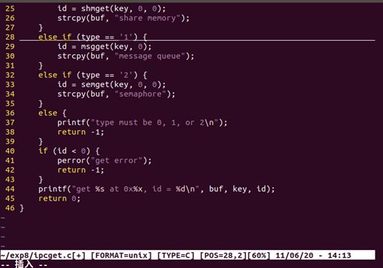 程序 ipcget 用于在指定的键值上获取 ipc 内核对象的 id 号。使用格式为 ./ipcget ,比如 ./ipcget 0 0x8888 表示获取键值 0x8888 上的共享内存 id 号。