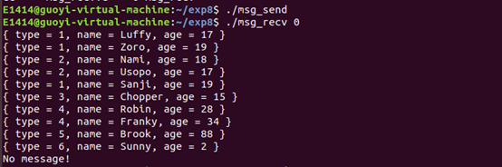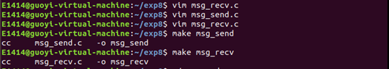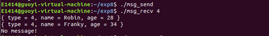 先运行 ./msg_send ,再运行 ./msg_recv 。