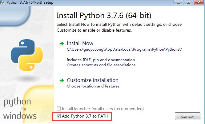 安装方法网上很多,也很简单这里不赘述,只强调一点,在安装时 将解释器添加到环境变量中;