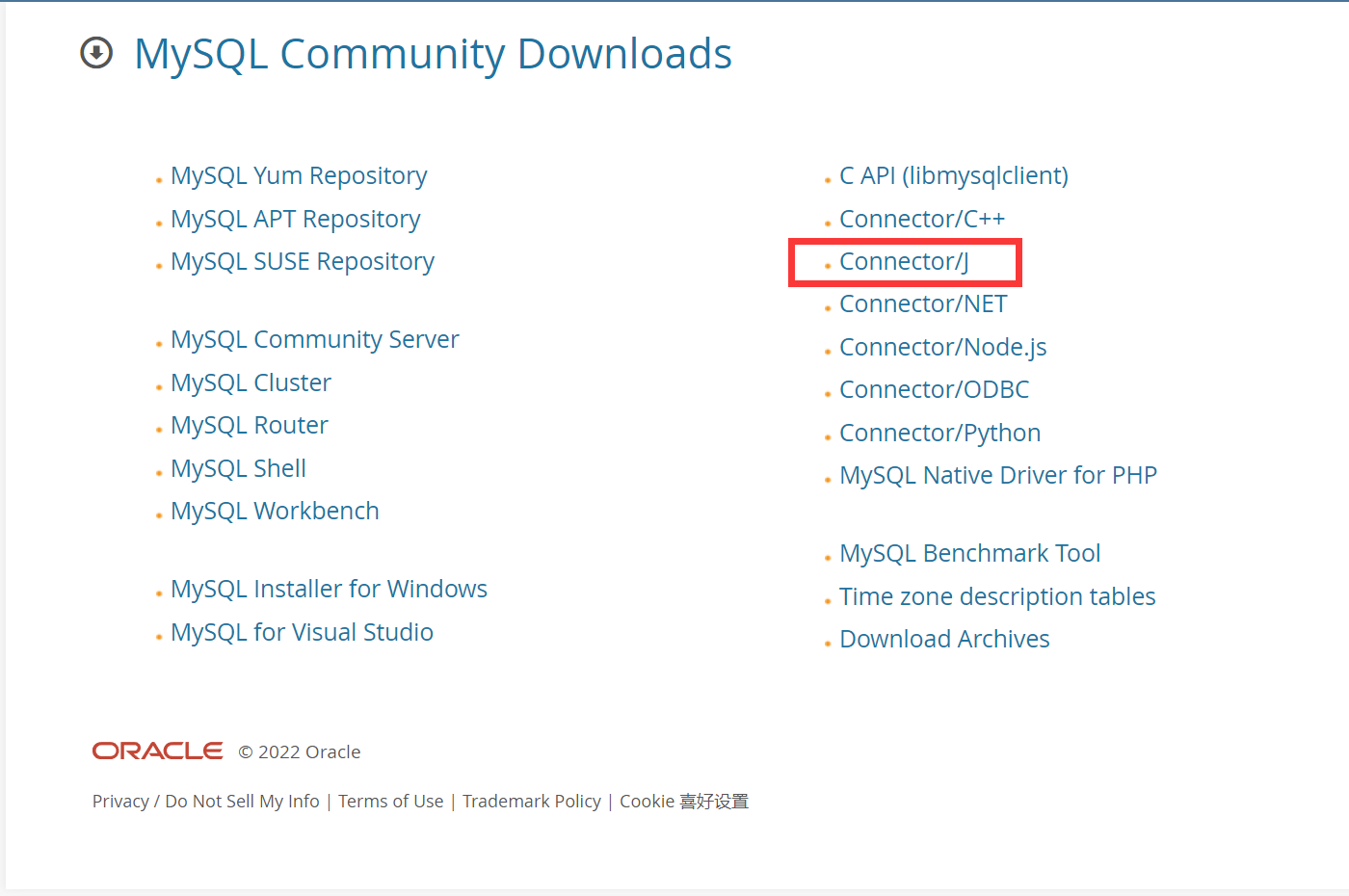 首先我们到MySQL的官网去下载支持程序“MySQL Connector/J”(MySQL官方的JDBC驱动程序)
